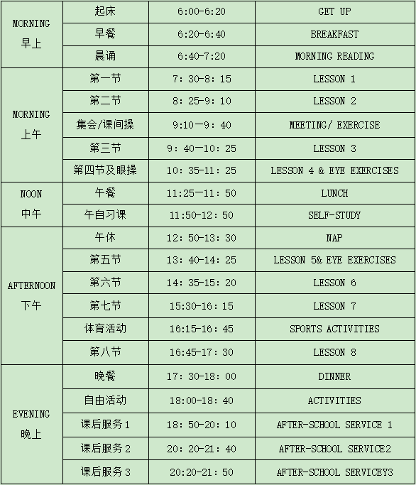 高中作息时间表