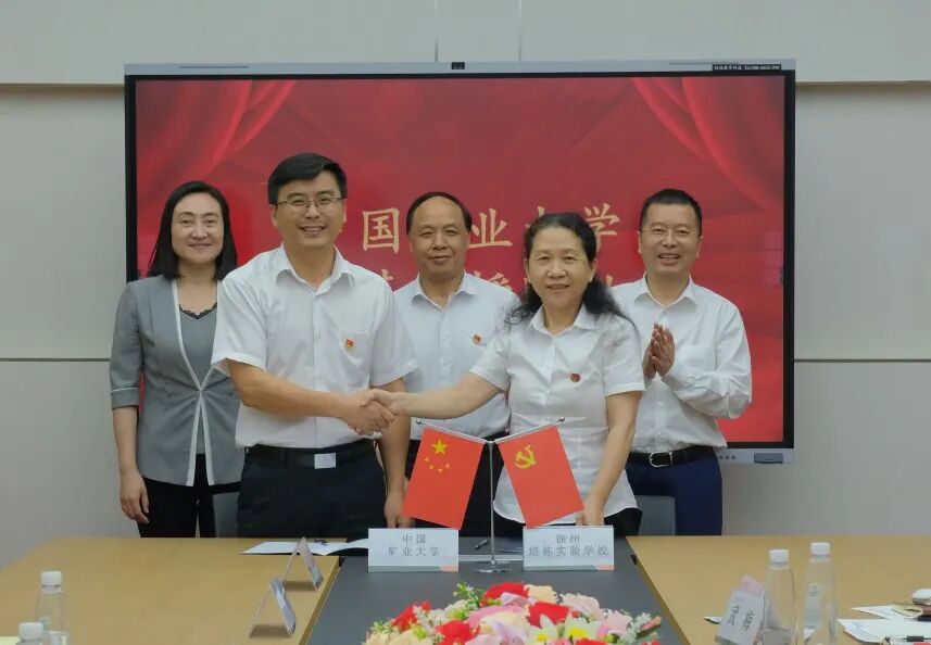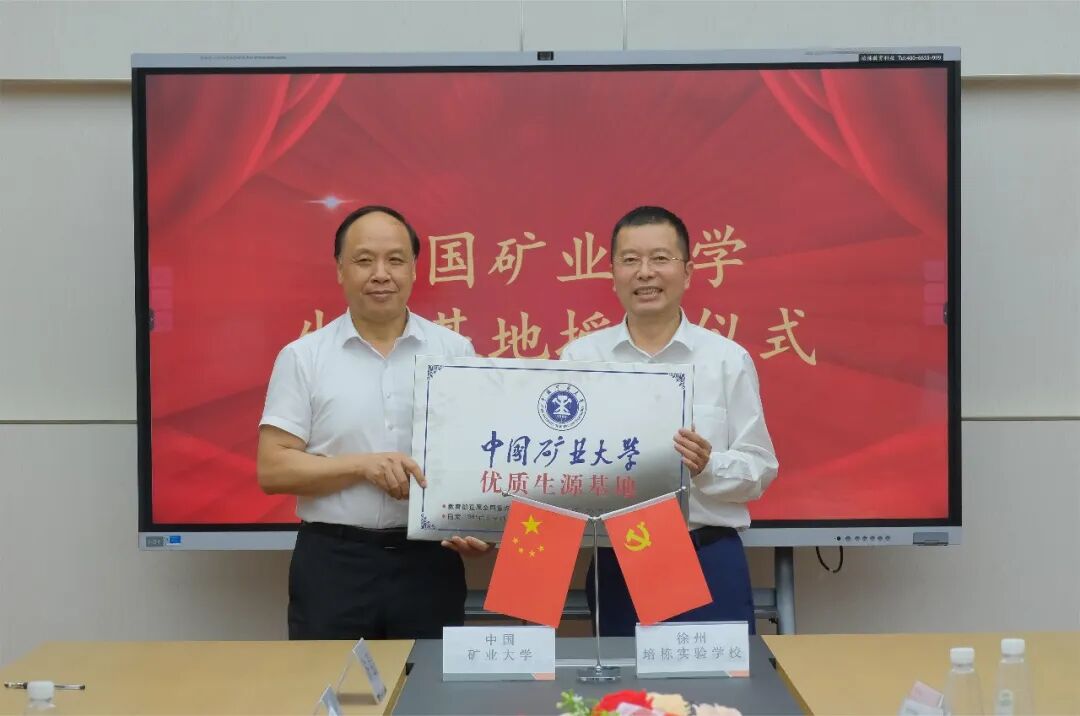 在与会人员的共同见证下,双方签订了“中国矿业大学与徐州培栋实验学校联合选拔培养优秀学生协议书”并举行了授牌仪式。