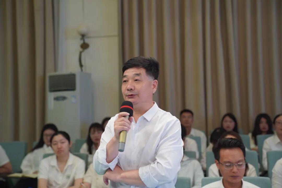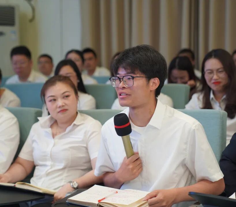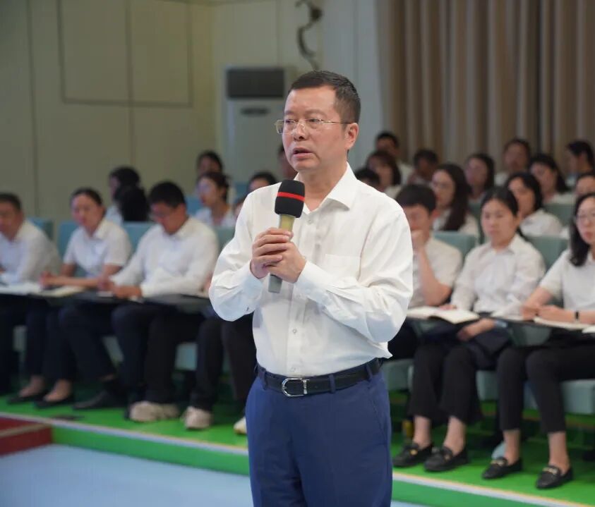 7月2日上午,蔡沛东校长对全体教师一学期的付出表示了衷心感谢,同时对一学期的工作教学进行总结,对新学期提出了要求与希望。并以“教师的思考,思考的教师”为主题,引领全校教师就“如何成为合格的教师”、“如何推进项目式学习”等问题展开探索与学习。蔡校长指出:我们要正确解读教师的“精神长相”,反思如何成为一名优秀的教育工作者,以学生为本,做有温度的教育。蔡校长还就教育教学中的系列问题,和与会的初中及小学部教师进行了互动,现场气氛和谐而热烈。