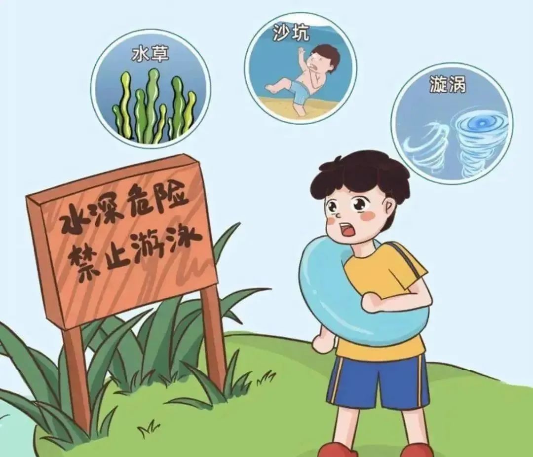 “六不”:不私自下水游泳;不擅自与他人结伴游泳;不在无家长或教师带领的情况下游泳;不到无安全设施、无救援人员的水域游泳;不到不熟悉的水域游泳;不熟悉水性的学生不擅自下水施救。